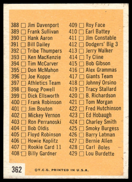1963 Topps #362 5th Series Checklist: 353-429 EX