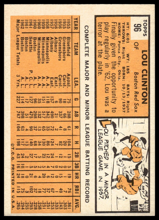 1963 Topps #96 Lou Clinton Boston Red Sox Excellent