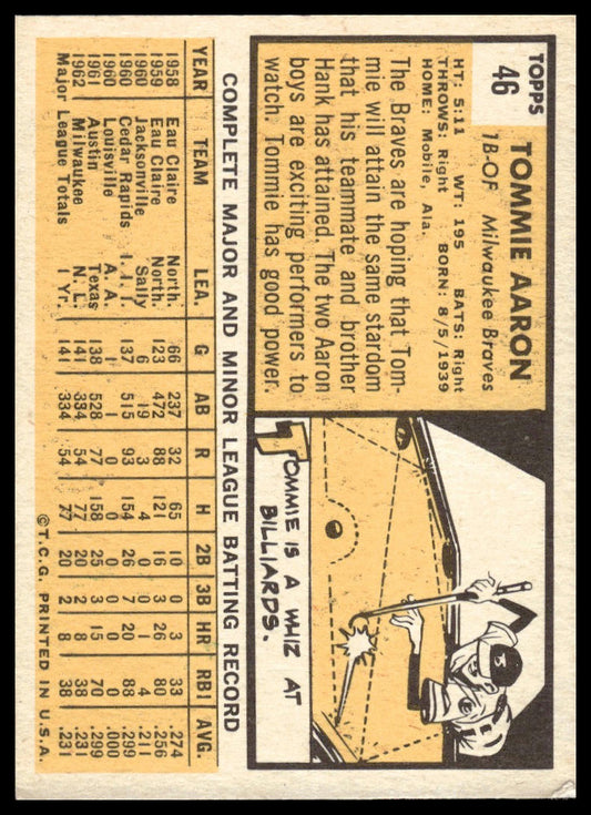 1963 Topps #46 Tommie Aaron Milwaukee Braves Rookie Very Good