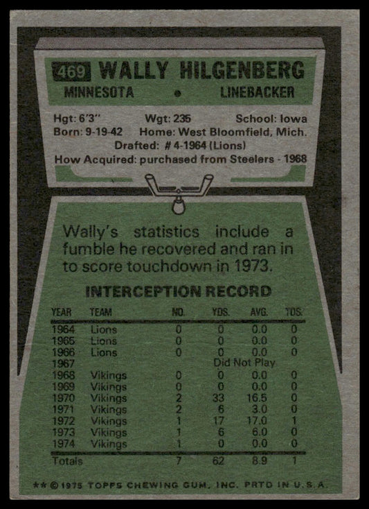 1975 Topps #469 Wally Hilgenberg Minnesota Vikings VG-EX