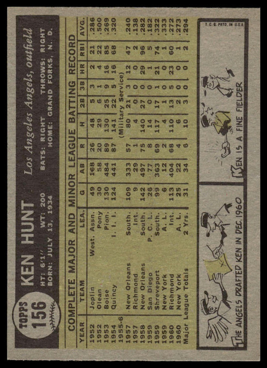 1961 Topps #156 Ken Hunt Los Angeles Angels Excellent