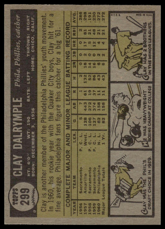 1961 Topps #299 Clay Dalrymple Philadelphia Phillies VG-EX