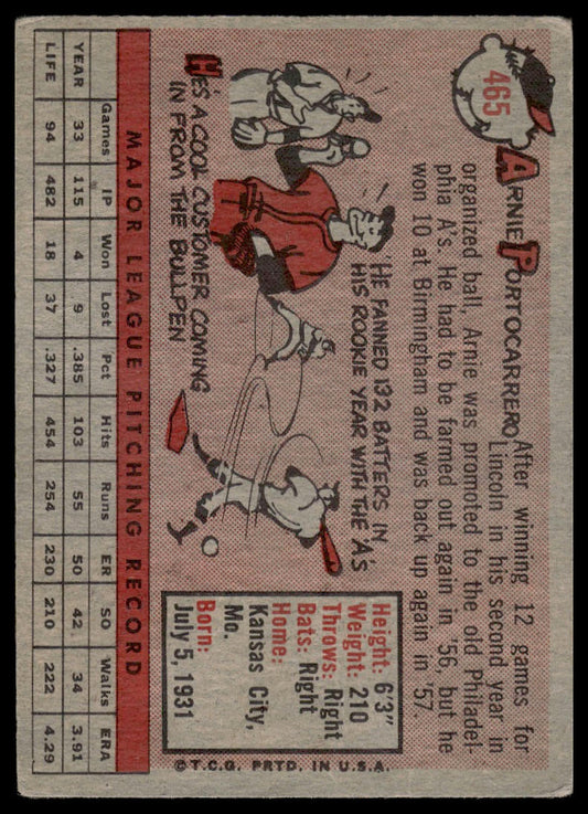 1958 Topps #465 Arnie Portocarrero Baltimore Orioles Very Good