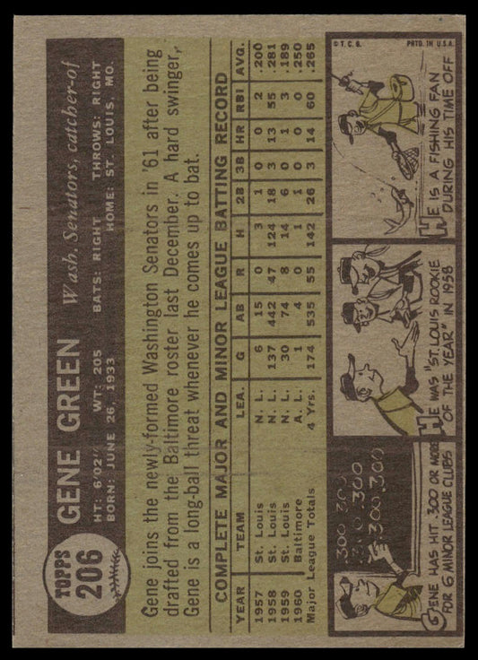 1961 Topps #206 Gene Green Washington Senators Very Good