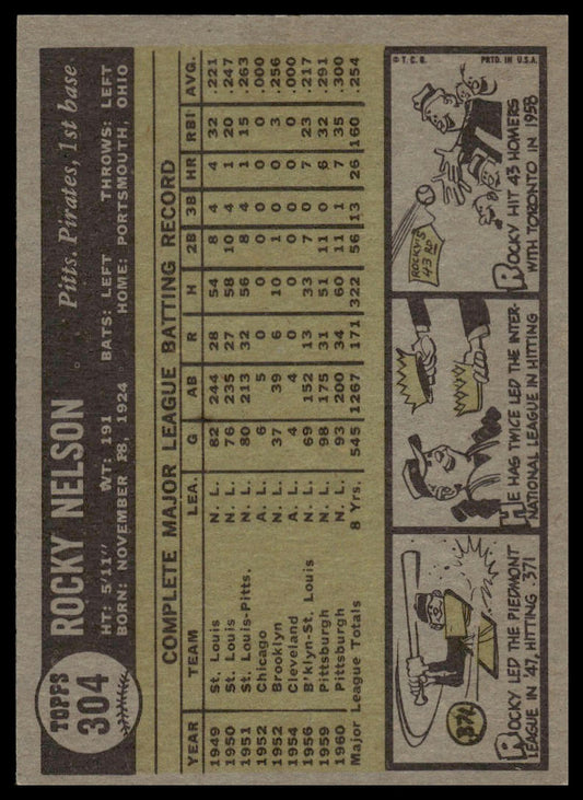 1961 Topps #304 Rocky Nelson Pittsburgh Pirates Excellent
