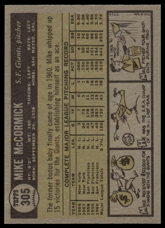 1961 Topps #305 Mike McCormick San Francisco Giants VG-EX