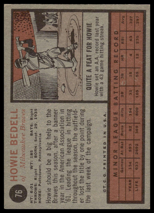 1962 Topps #76 Howie Bedell Milwaukee Braves VG-EX