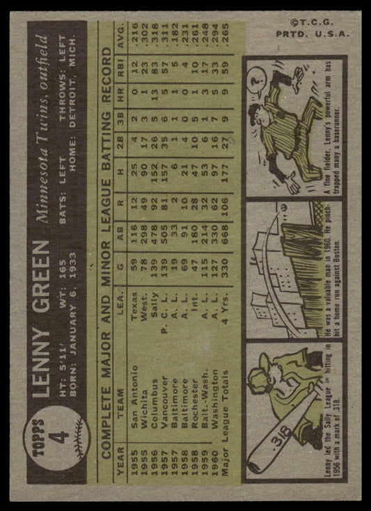 1961 Topps #4 Lenny Green Minnesota Twins Excellent
