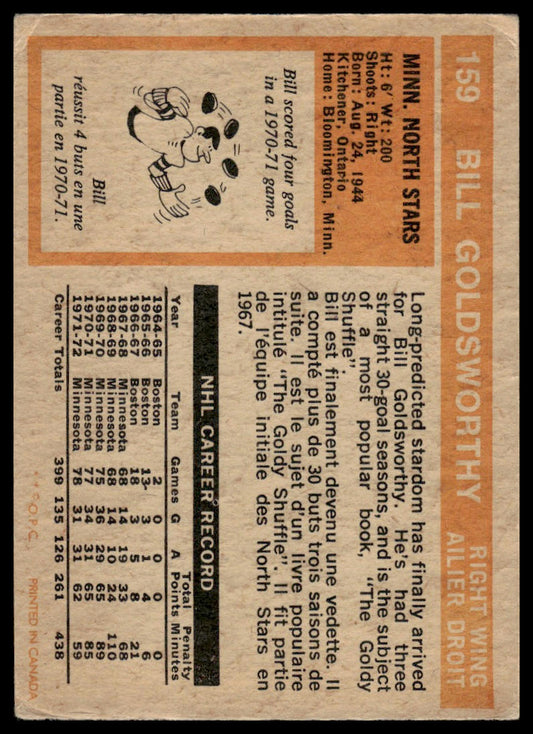 1972-73 O-Pee-Chee #159 Bill Goldsworthy Minnesota North Stars VG-EX
