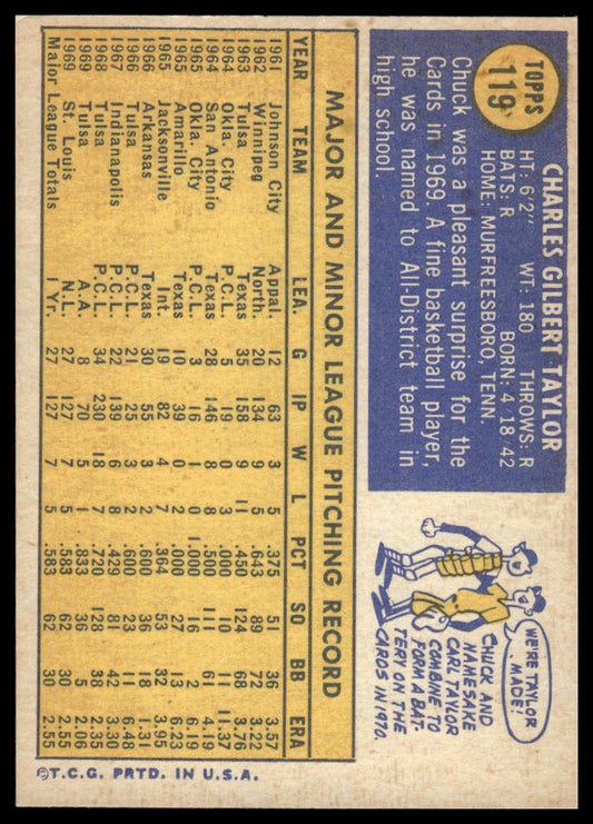 1970 Topps #119 Chuck Taylor St. Louis Cardinals Rookie Excellent
