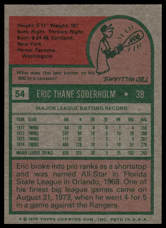 1975 Topps #54 Eric Soderholm Minnesota Twins VG-EX