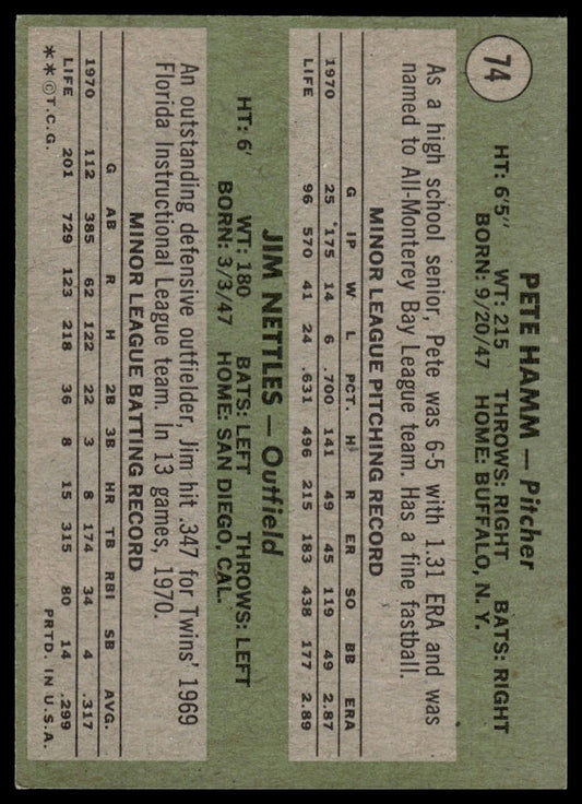 1971 Topps #74 Rookie Stars (Pete Hamm / Jim Nettles) Minnesota Twins EX