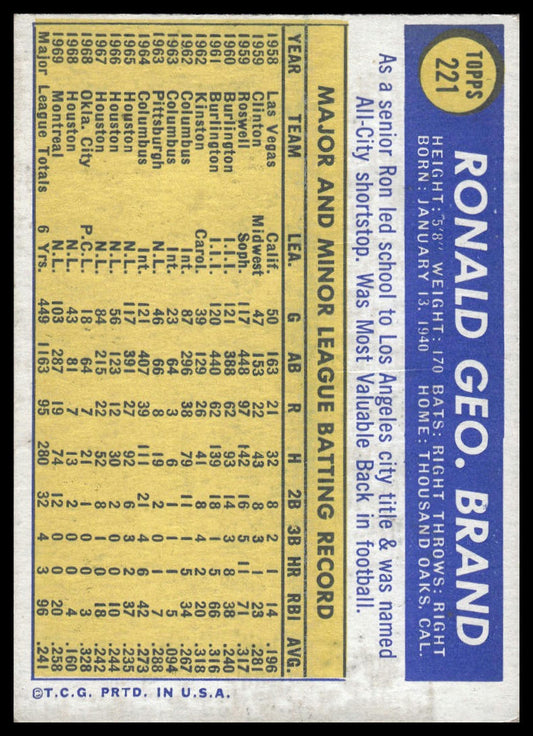 1970 Topps #221 Ron Brand Montreal Expos VG-EX