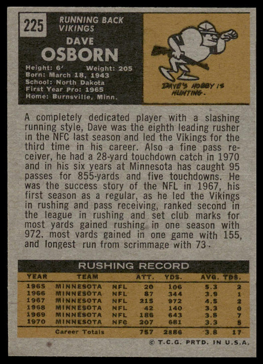 1971 Topps #225 Dave Osborn Minnesota Vikings Excellent