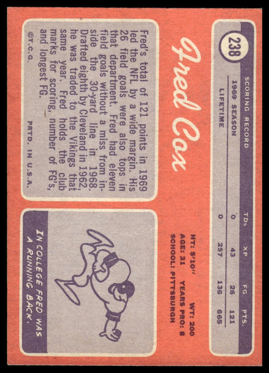 1970 Topps #238 Fred Cox Minnesota Vikings Very Good