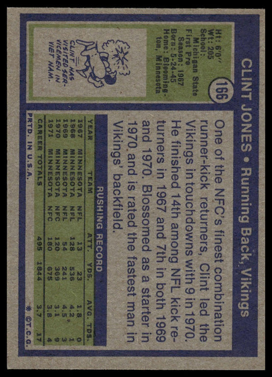 1972 Topps #166 Clint Jones Minnesota Vikings Rookie Excellent