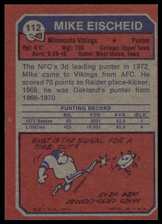 1973 Topps #112 Mike Eischeid Minnesota Vikings Excellent