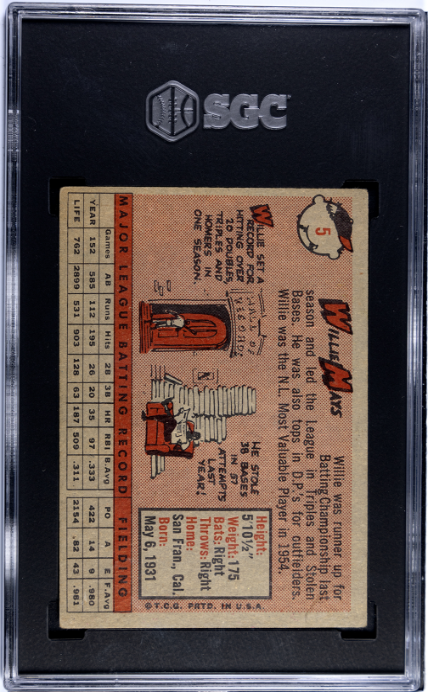 1958 Topps #5 Willie Mays San Francisco Giants SGC 4 VG-EX