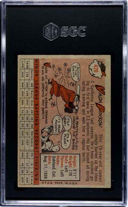 1958 Topps #420 Vada Pinson Cincinnati Reds Rookie SGC 5