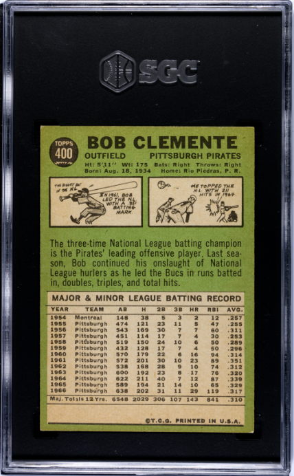 1967 Topps #400 Bob Clemente Pittsburgh Pirates SGC 6