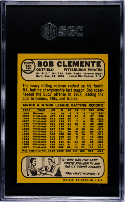 1968 Topps #150 Bob Clemente Pittsburgh Pirates SGC 5