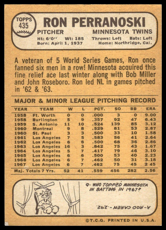 1968 Topps #435 Ron Perranoski Minnesota Twins EX