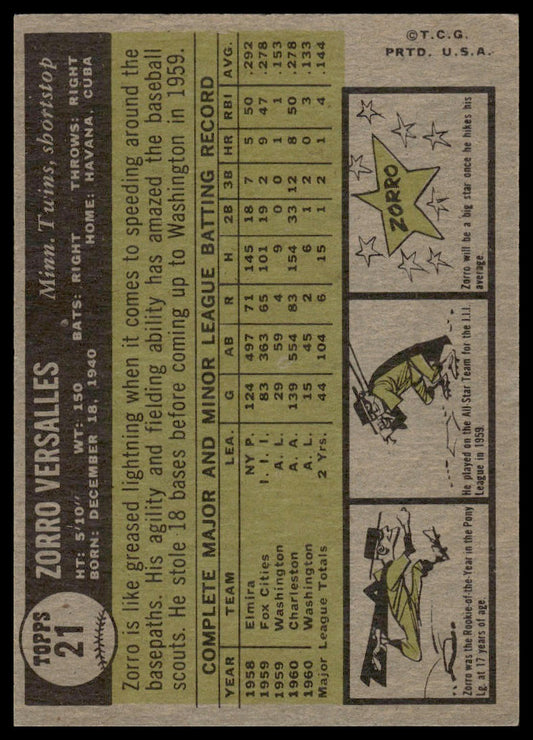 1961 Topps #21 Zoilo Versalles Minnesota Twins Rookie VG-EX