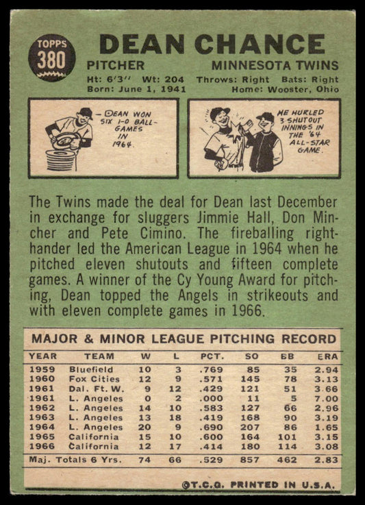 1967 Topps #380 Dean Chance Minnesota Twins Very Good