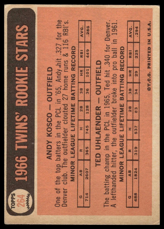 1966 Topps #264 Rookie Stars (Kosco / Uhlaender) Minnesota Twins Rookie VG